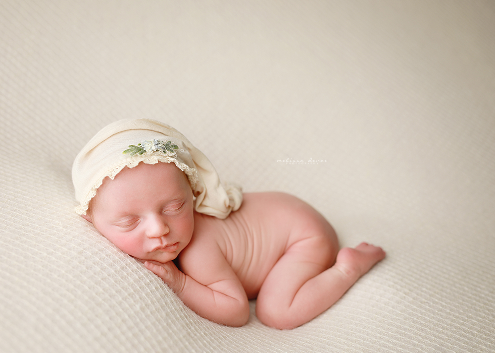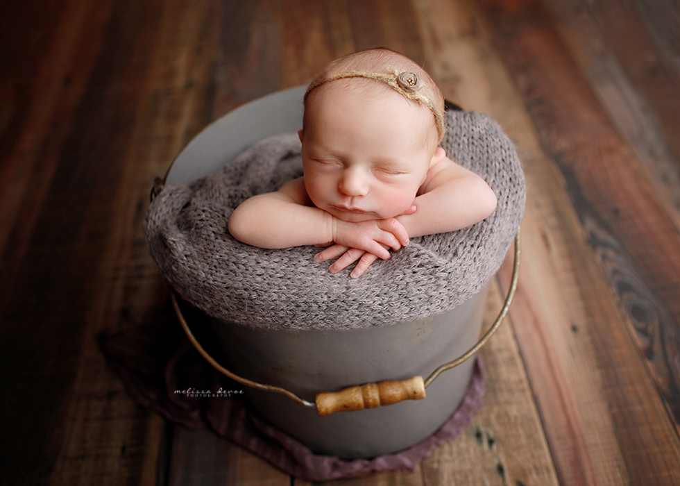 Melissa is known for her HUGE prop selection, with her wide variety of buckets, baskets, blankets, hats, headbands, wraps, and accessories for babies. Every detail is covered when you book with Melissa – the sign of a true professional. Melissa offers a huge amount of skill in her patience and posing babies.